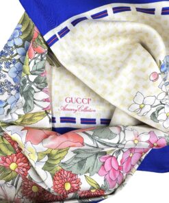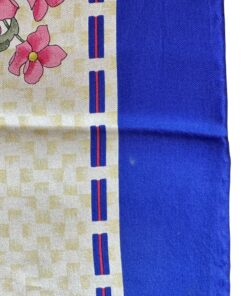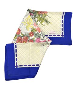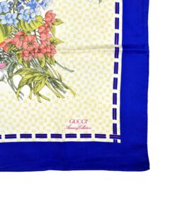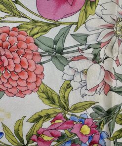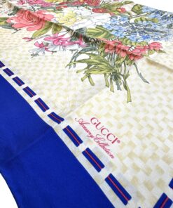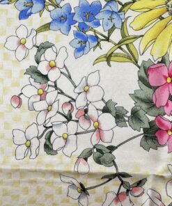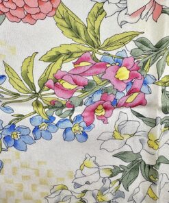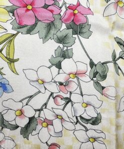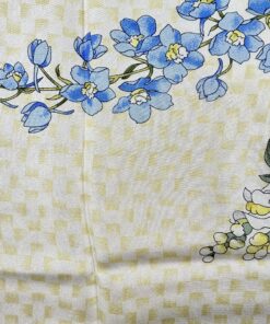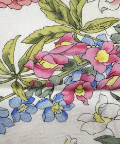 - Bordo blu e base beige, con fantasia a fiori rosa, gialli e celesti