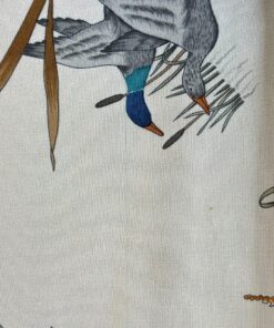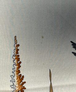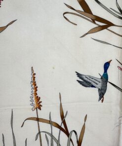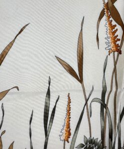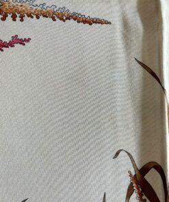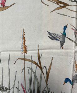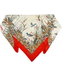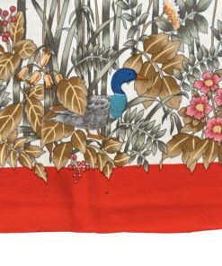 - Bordo rosso e base beige, con fantasia natura (fiori e uccellini) con colori predominanti rosso, rosa, marrone e celeste