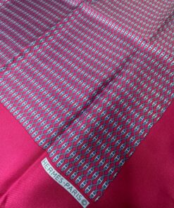 Bellissimo Foulard di Hermès, in seta rossa e a fantasia geometrica.