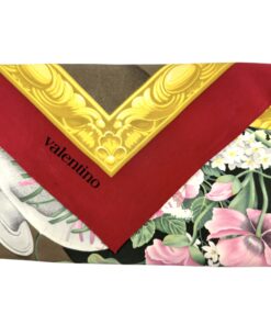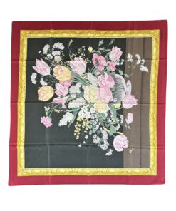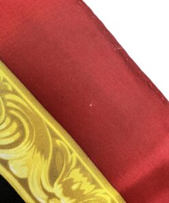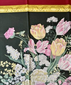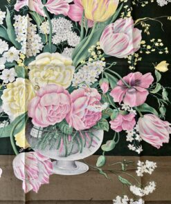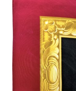 - Stampa effetto quadro, con base rossa e oro e stampa floreale classica, con fiori rosa e gialli