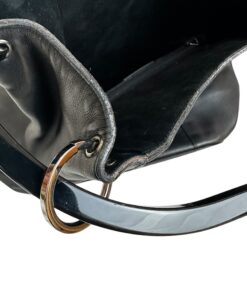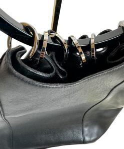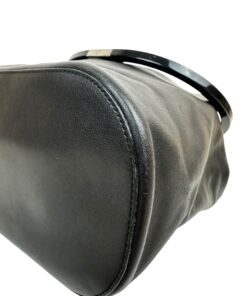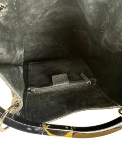 - Original elliptical-shaped leather handle with metallic detail and Gucci logo