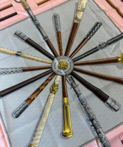 Hermès Foulard Cannes et Pommeaux F. De La Perriere in Seta Rosa.