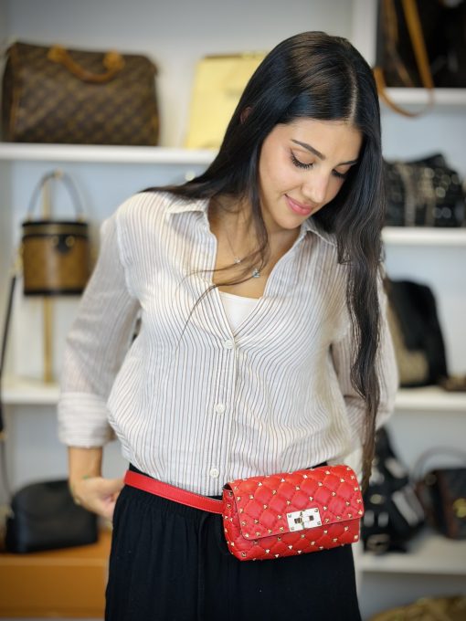 Marsupio Valentino Garavani in Pelle Rossa e Borchie