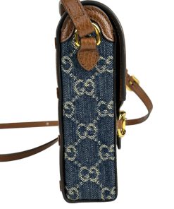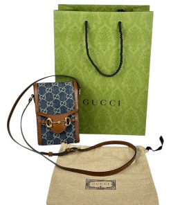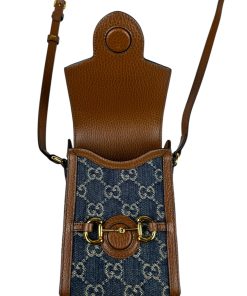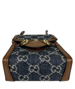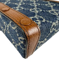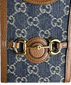 Versione mini ma accattivante e trendy, la Mini Borsa Gucci Horsebit 1955 in Denim GG Blu è un modello d’archivio per Gucci.