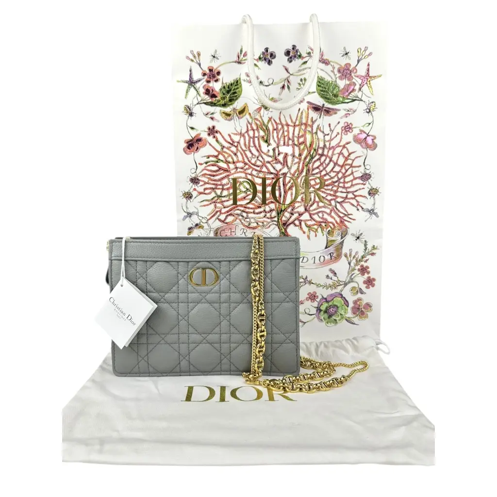Pochette Every Dior – Dior Caro in Pelle Cannage Grigia con Catena.