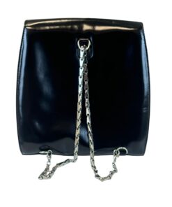 Questa Pochette Gucci Zumi in Pelle Nera Lucida è perfetta per gli amanti del Brand e degli articoli vintage di lusso.