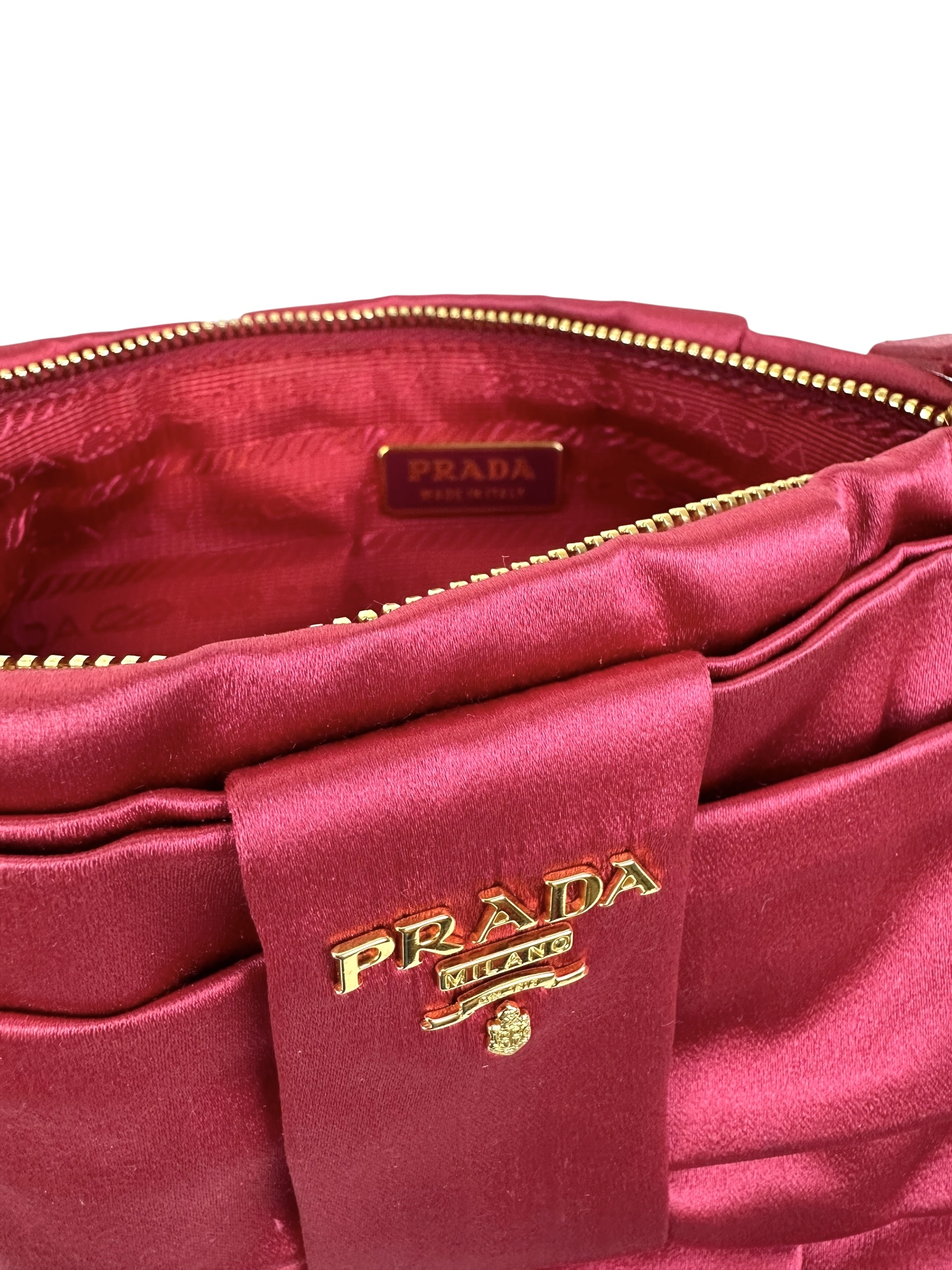 Pochette Prada a Mezzaluna in Tessuto Fucsia.