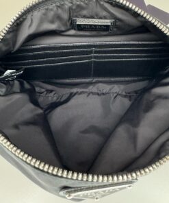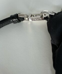 Pochette Prada en nylon et saffiano noir. Parfait état, comme neuf. Les détails en tissu et en métal ne présentent aucun défaut. Vendu avec le certificat d’authenticité Prada original, le sac à poussière, le reçu et l’enveloppe d’achat Prada originale. Dimensions : largeur 27,5 cm, hauteur 17,5 cm. https://www.tiktok.com/@revyta.it/video/7342219320589700385