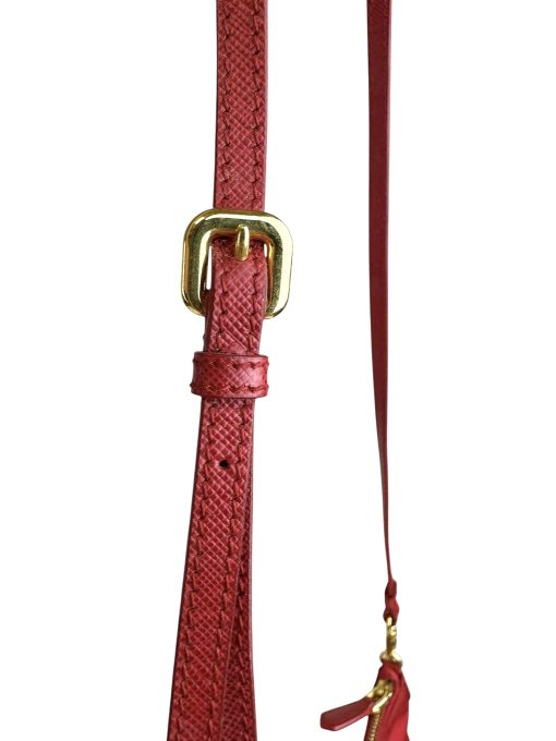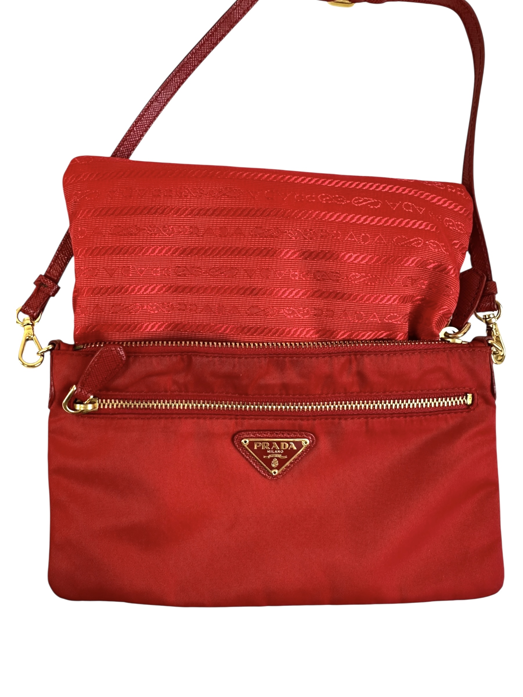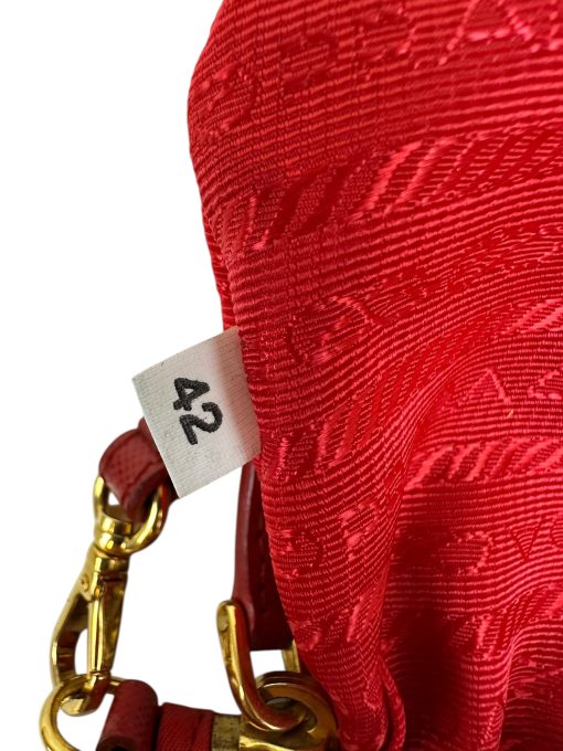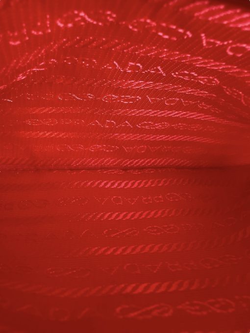 - Interno in tessuto rosso firmato Prada