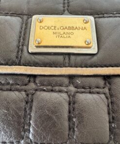 Portafoglio Dolce e Gabbana in pelle marrone, con chiusura a bottone ed effetto trapuntato.