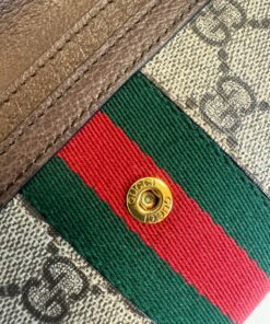 Parte della collezione Ophidia, è realizzato esternamente in tessuto monogramma GG Supreme con profili in pelle marrone, arricchito dal Nastro Web verde e rosso di ispirazione equestre e dalla Doppia G in metallo dorato.