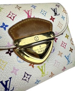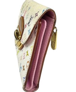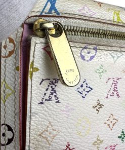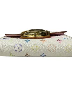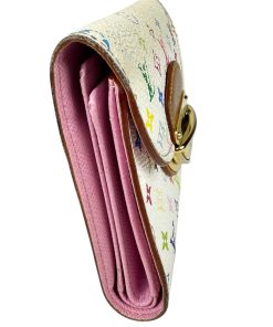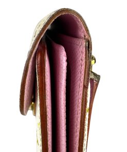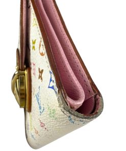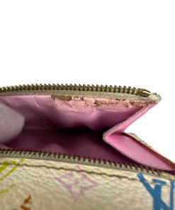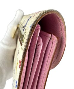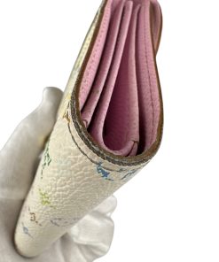Portafoglio Louis Vuitton Trifold Murakami Multicolor Fondo Bianco e Dettagli Rosa.