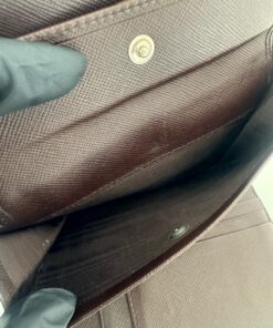 Portafoglio Prada in Nylon Marrone, con chiusura a bottone.