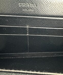 In tessuto nylon, chiusura con zip e logo triangolare Prada in metallo smaltato sulla parte frontale.