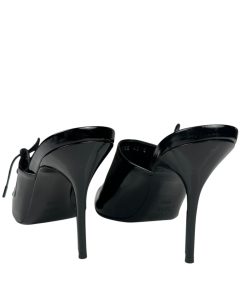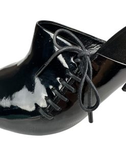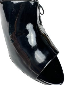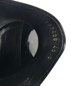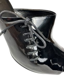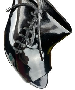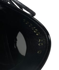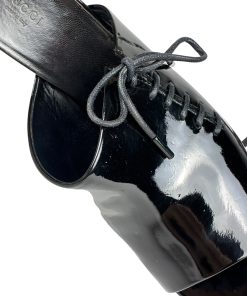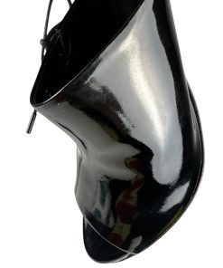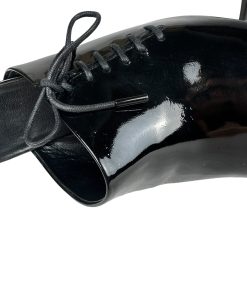 - Dettaglio cucitura in pelle laterale con filo nero e fiocco