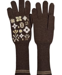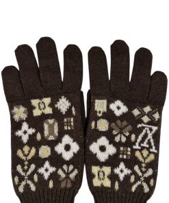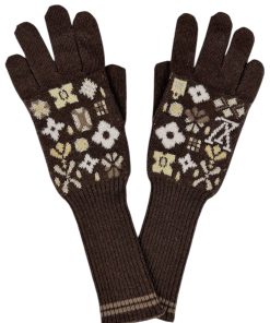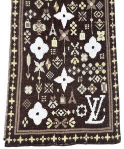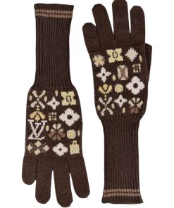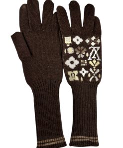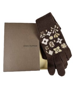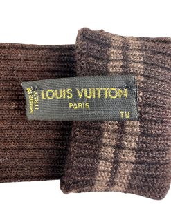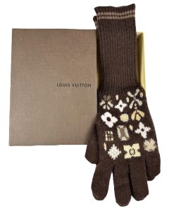Bellissimo Set Sciarpa e Guanti Louis Vuitton in Lana Marrone Fantasia Loghi LV, per accogliere l’inverno con stile ed eleganza.