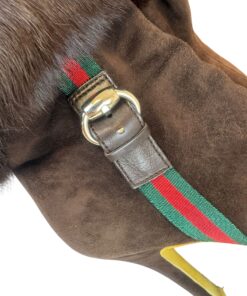 - Dettaglio laterale Nastro Web verde e rosso con fibbia dorata decorativa