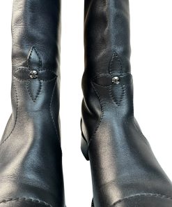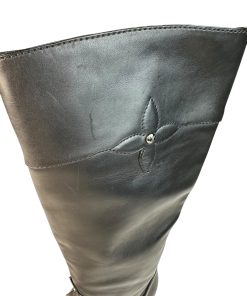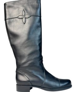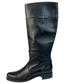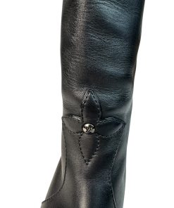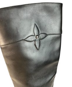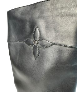 - Dettaglio iconico LV del fiore a quattro punte in pelle, con logo LV metallico al centro