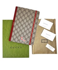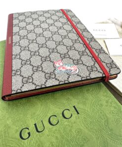 Taccuino Gucci con Stampa Gatto Misura Grande, realizzato in edizione limitata, in tela Supreme effetto cerato e bellissimi dettagli rossi e dorati a contrasto.