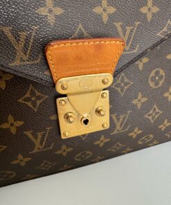 Cartella porta documenti Louis Vuitton Serviette Ambassadeur in Tela Monogram, con finiture ed interni in pelle martellata e dettagli in metallo dorato.