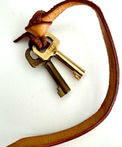 Cordino con due chiavi in metallo dorato.